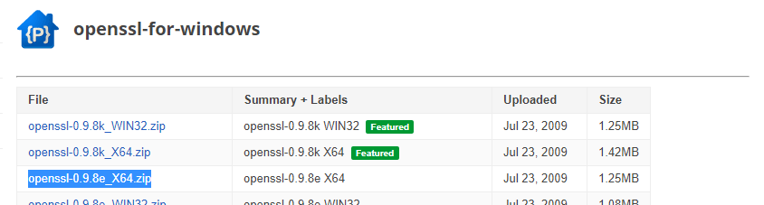 - code.google.com/archive/p/openssl-for-windows/downloads ์ด๋